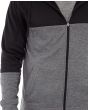 • Full-zip gray and black hoodie.